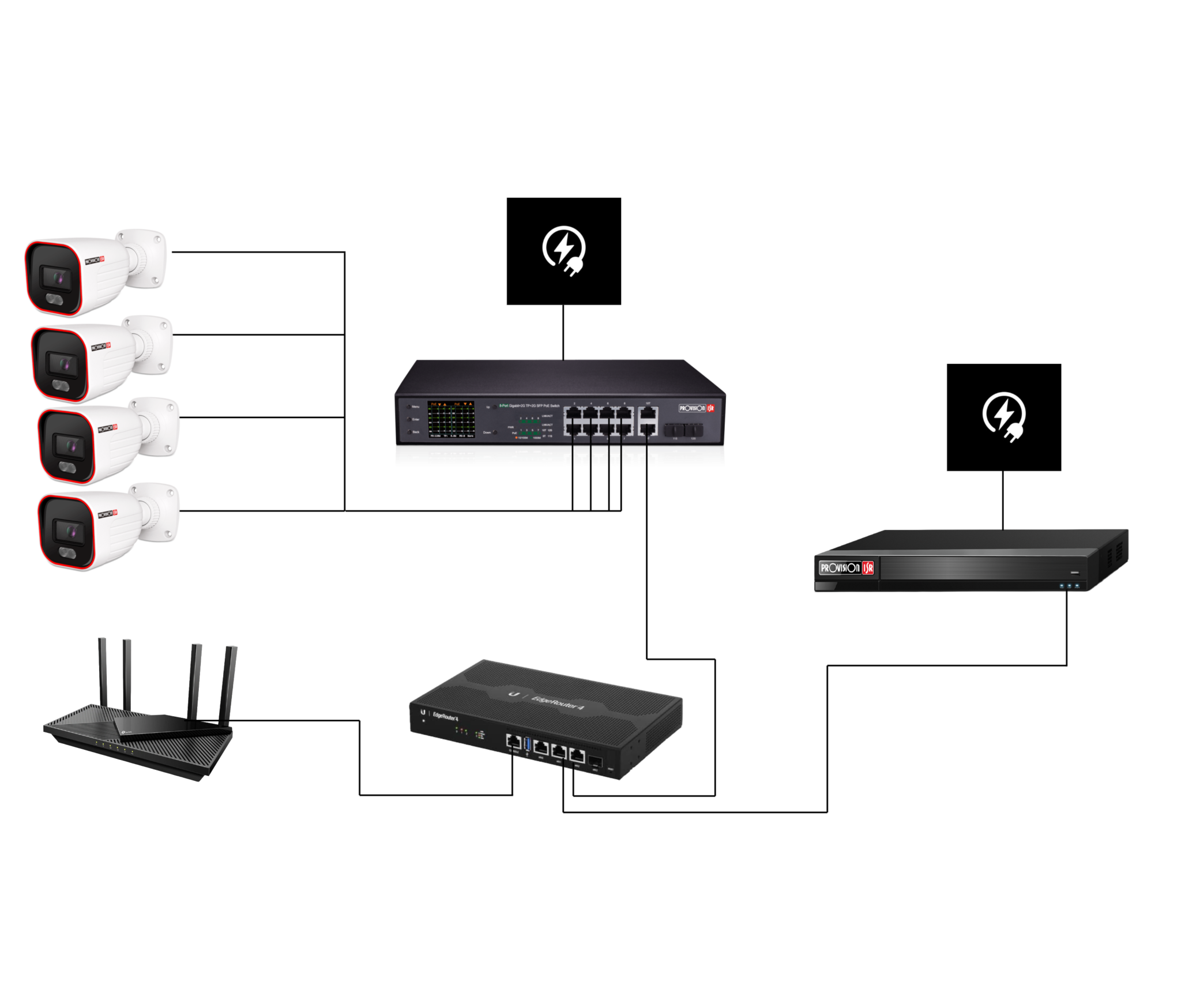 Säker PoE-kablage: PoE har lågspänningskablage, så du behöver inte hantera farlig växelström. Risken är lägre om du vill bygga IP-kamerasystemet själv. Dessutom, när du väljer enheter som uppfyller standard PoE som huvud-PSE (strömförsörjningsutrustning), kommer det att vara en ytterligare säkerhetsåtgärd tack vare dess PoE-detektionsmekanism.