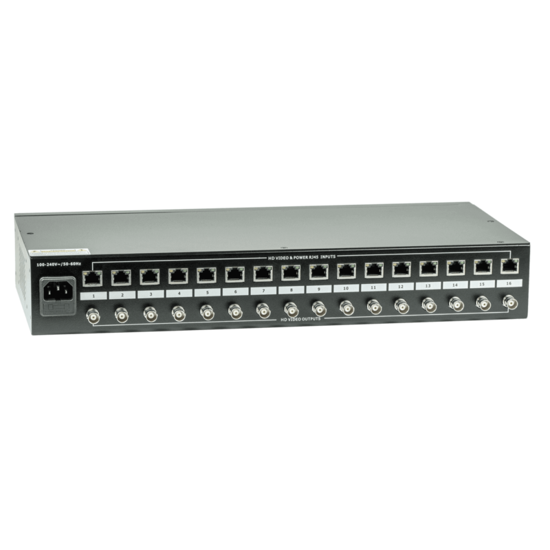 Balunboxen för 16 kameror säkerställer maximal bildkvalitet för analoga-/TVI-kameror i de största systemen genom stabil strömmatning och stark videosignal. Den fungerar på samma sätt som enskilda TVI-baluner men ger en snyggare installation och färre strömadaptrar då balunboxen har inbyggd strömmatning. Den placeras i anslutning till din videolagringsenhet och sedan dras nätverkskablar från den ut till kamerorna där en speciell balunmottagare omvandlar signal och matar perfekt ström till kameran. 16 koaxialkablar á 1 meter samt 16 balunmottagare medföljer. Mellan kamera och balunbox dras alltid nätverkskabel.